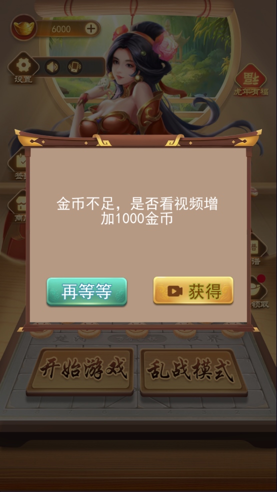 2。单击观看视频以添加1,000枚金币