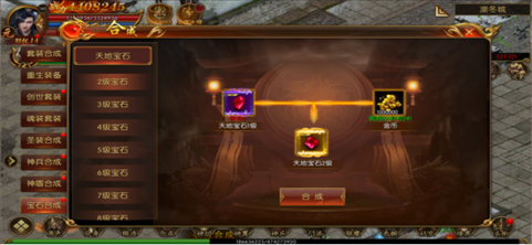 宝石合成:三个低级宝石可以产生高级宝石,依此类推,可以合成多达十个级别。
