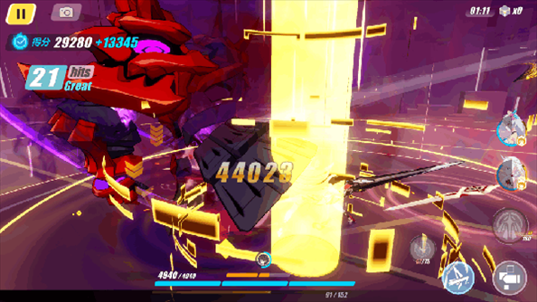 游戏使用虚拟摇杆+按钮的操作方法,三个按钮是道奇技能,一般攻击和最终动作。不同的钥匙按压方法还将触发不同的技能。