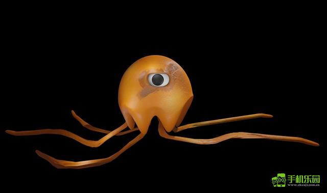 毒刺弗林是一种橙色水母,钟形头部中间有一只眼睛,连接着6 个可伸缩的触手。他的四根触手指向下方,另外两根触手则以友好的姿势举起在他的头两侧。