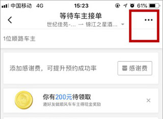 2。输入行程后,您可以沿途检查当前驱动程序。如果没有合适的人,则可以取消行程或重新释放它。我们单击右上角的三点图标按钮;